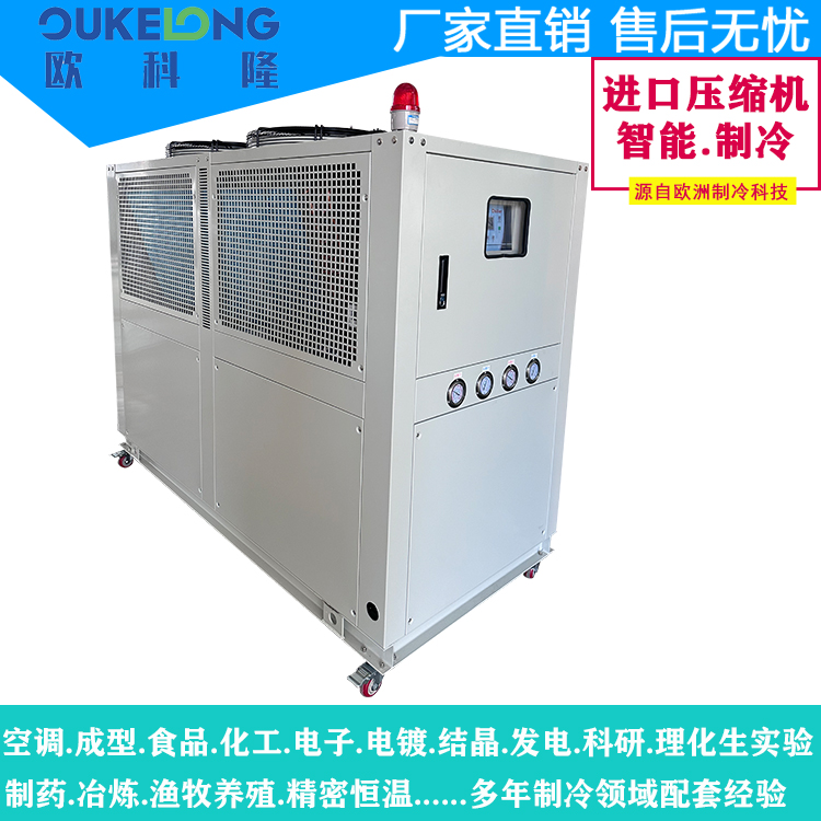 歐科隆12HP風冷式冷水機是一款高效節能的中型工業制冷設備,專為中小型生產線和商業設施設計。該機型采用先進的空氣冷卻技術,免除冷卻塔安裝,具有出色的環境適應性和運行穩定性。