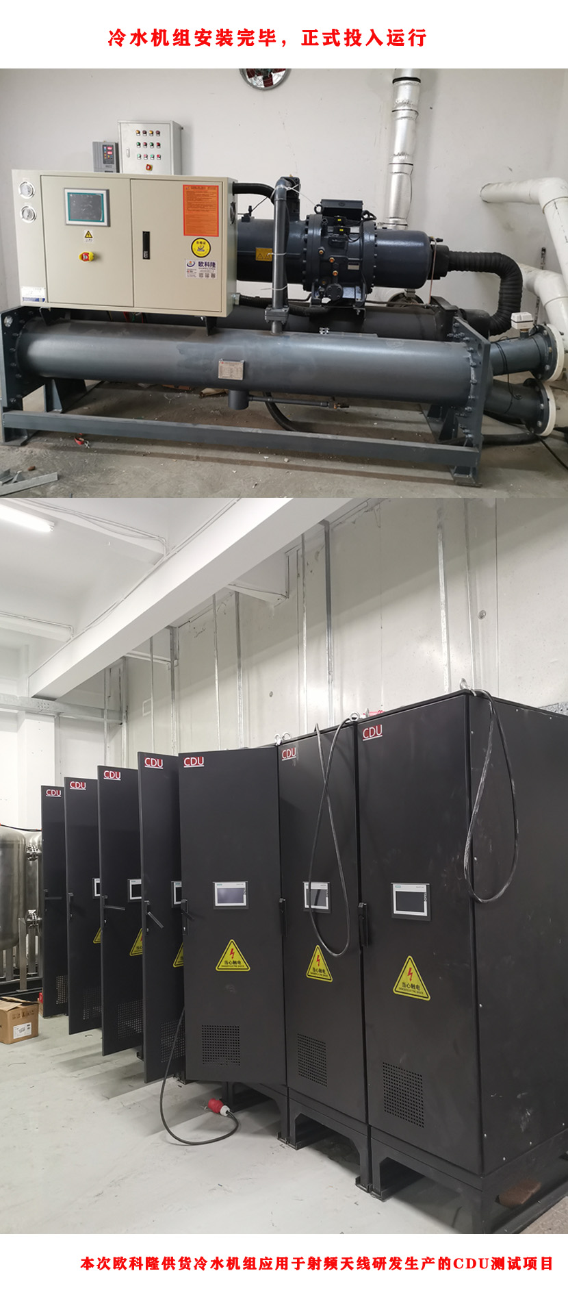 歐科隆水冷螺桿式制冷機組本次供應于華為東莞公司的射頻天線研發生產測試CDU生產線。項目立項之后華為集團技術團隊在珠三角地區仔細調研冷水機生產廠家的綜合實力和技術力量,最終歐科隆品牌脫穎而出榮耀成為華為集團該項目制定合作供應商。因歐科隆制冷品牌技術實力雄厚,設計理念超前,深得華為集團信服。